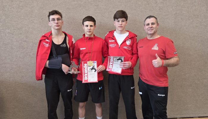 In der Altersklasse U17 bis 55 Kilogramm (9 Teilnehmer) gewann Samuel Puscas alle vier Kämpfe. Er besiegte Louis Weisshaar vom ASV Nendingen mit 8:0 nach technischer Überlegenheit. Gegen Constantin Lübbe vom AC Röhlingen setzte er sich mit 10:2 durch. Den Kampf gegen Hassan Al Hussein von der KG Plieningen/Kaltental entschied er mit 0:8 für sich. Im vierten Duell gewann er gegen Marcel Maximilian Kunst vom SV Fellbach mit 12:4. Herzlichen Glückwunsch Samy zur Goldmedaille 🥇.